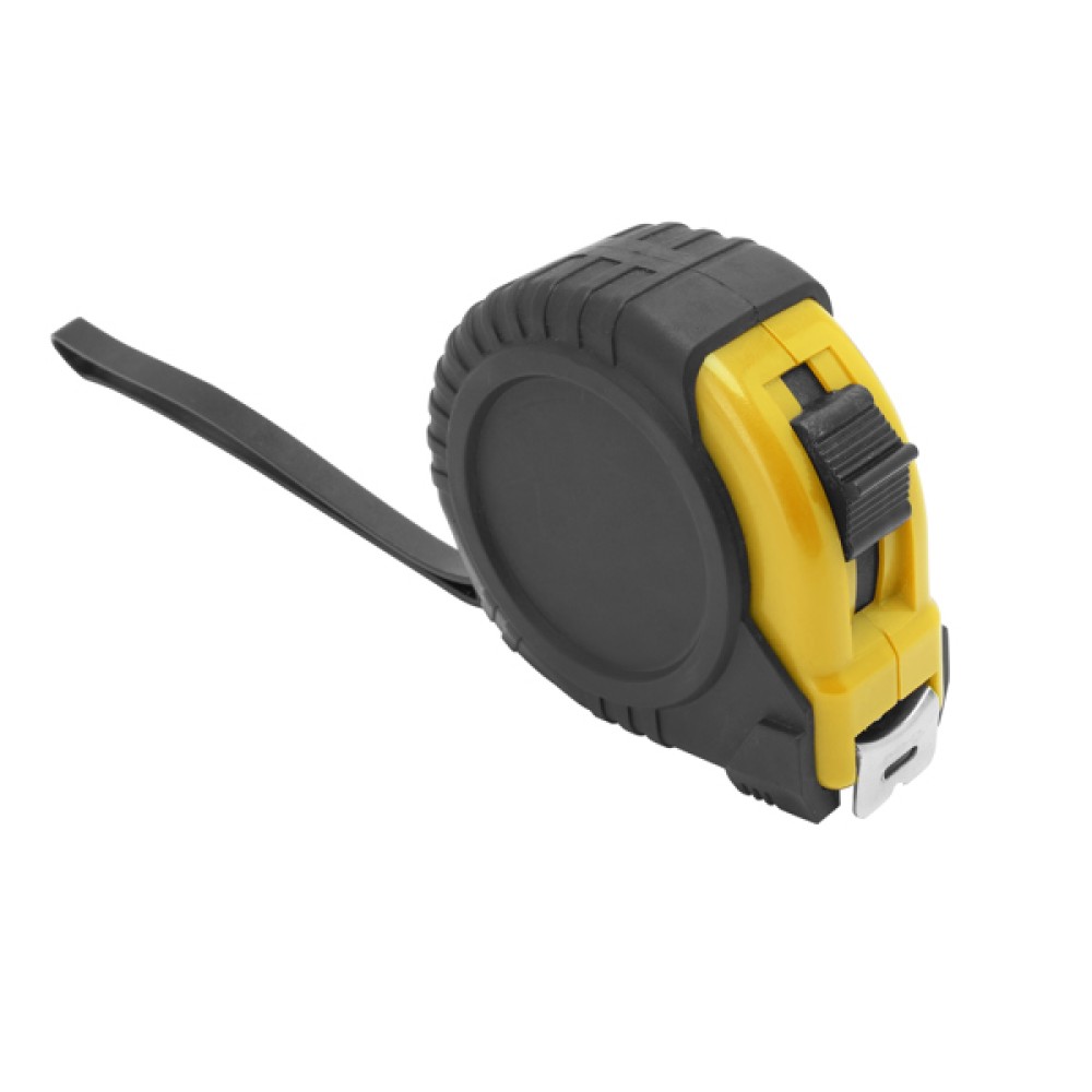 Рулетка / флексометр длиной 3 м с блокирующим механизмом и металлическим крючком для ленты. Корпус из цветной резины, металлическая клипса и ремень для переноски.