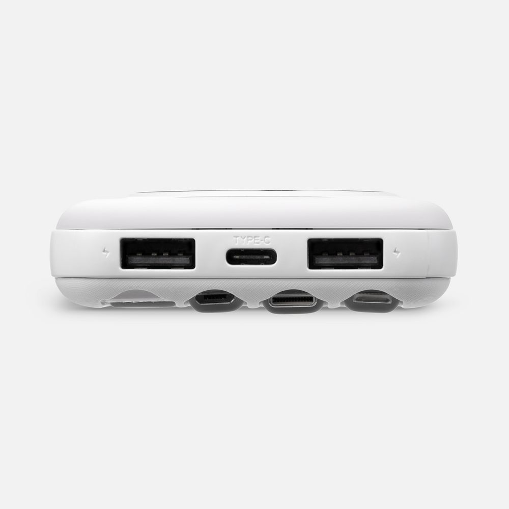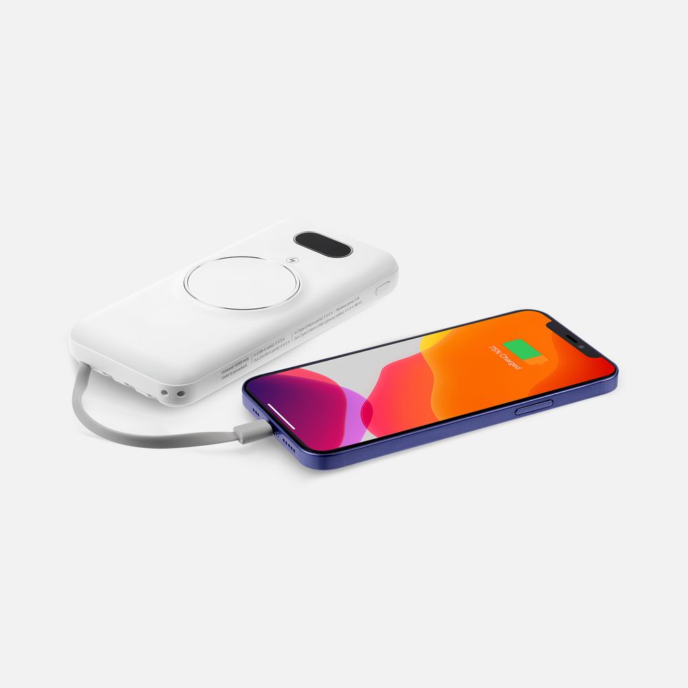Интересная особенность аккумуляторов Omni — совершенно автономная конструкция: встроенные кабели позволяют заряжать как самые разные электронные устройства, так и сам аккумулятор. Если же смартфон поддерживает беспроводной заряд, то кабель вообще не нужен. Наглядный индикатор заряда в процентах.