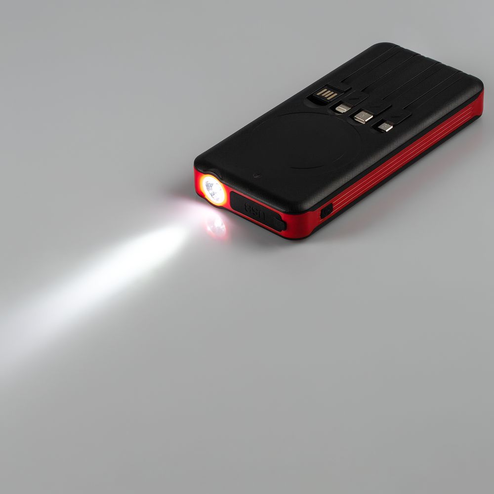 Holiday Maker Wireless — outdoor-аккумулятор с ударопрочным корпусом и защитой от пыли и брызг, который не страшно взять с собой в поход. С ним удобно заряжать разные типы устройств благодаря области для беспроводной зарядки, а также 3 встроенным кабелям с разъемами micro USB, Type-C и Lightning. Со встроенной солнечной батареей получится не остаться совсем без связи. Яркий фонарик осветит путь или послужит сигнальным маячком.