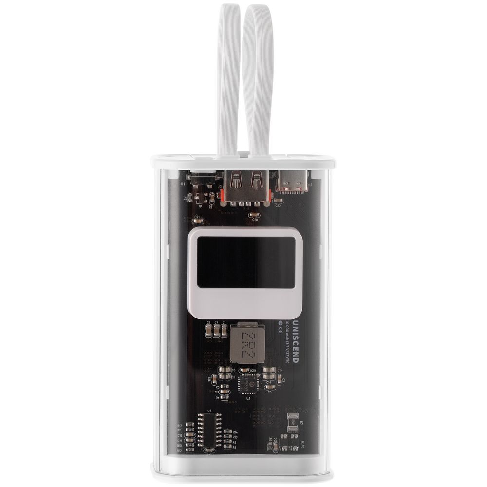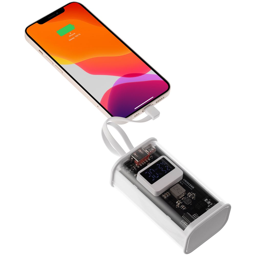 Необычный дизайн коллекции Uniscend Trellis выгодно выделяет новую серию устройств из прозаичного ряда внешних аккумуляторов. Они не поддерживают беспроводную зарядку, зато точно привлекают внимание: под прозрачной панелью хорошо видна электронная начинка. Цифровой индикатор показывает оставшийся в аккумуляторе заряд, а также отображает показатели зарядного процесса Quick Charge в вольтах и амперах.