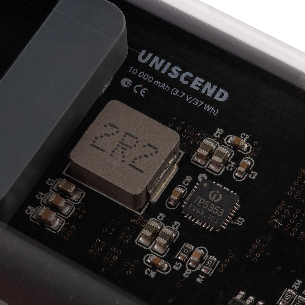 Необычный дизайн коллекции Uniscend Trellis выгодно выделяет новую серию устройств из прозаичного ряда внешних аккумуляторов. Они не поддерживают беспроводную зарядку, зато точно привлекают внимание: под прозрачной панелью хорошо видна электронная начинка. Цифровой индикатор показывает оставшийся в аккумуляторе заряд, а также отображает показатели зарядного процесса Quick Charge в вольтах и амперах.