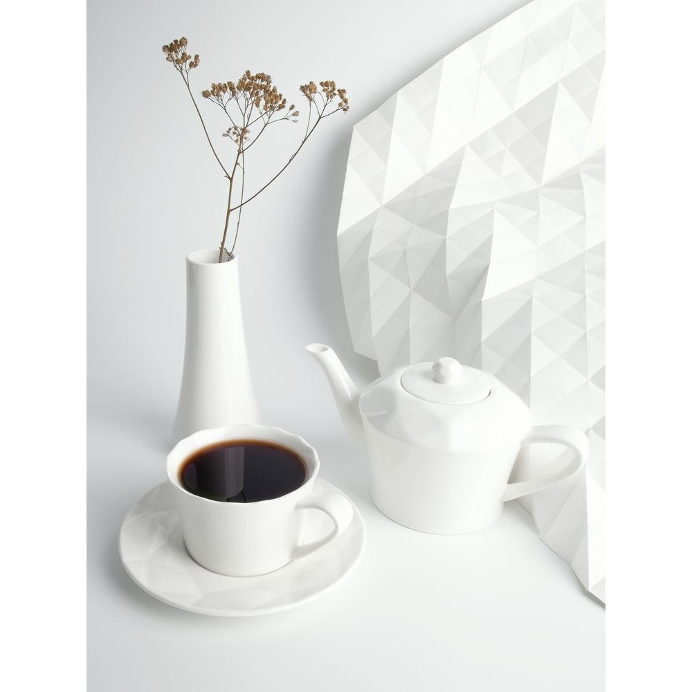 Линейка Diamante Bianco — настоящий бриллиант коллекции Altavolo. Структура и пропорции граней этой небольшой вазочки в точности повторяют верхнюю часть бриллианта классической огранки — корону. Присмотритесь — и вы увидите, как играет свет на молочно-белом фарфоре.