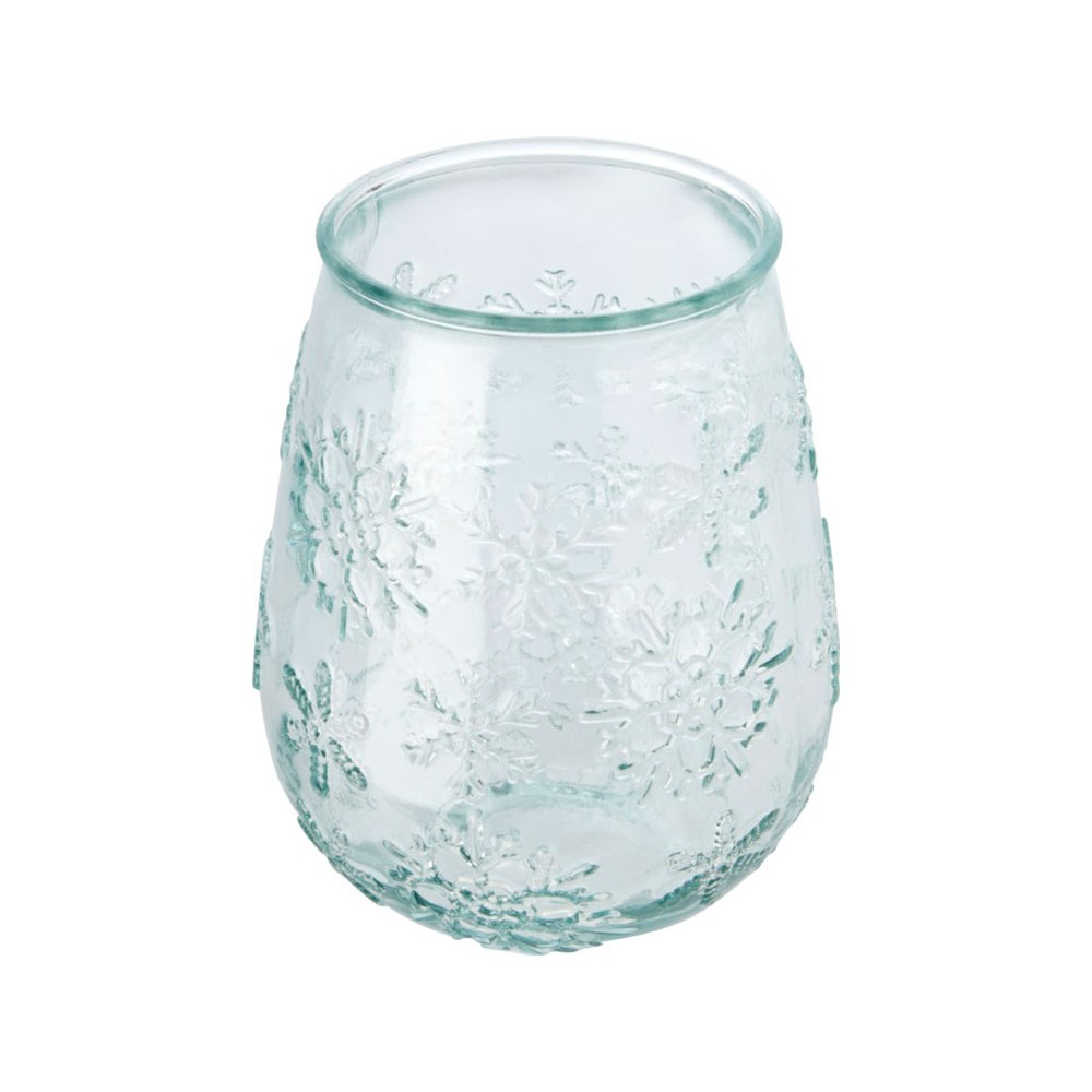 Подставка для чайной свечи из переработанного стекла с узором в виде падающих снежинок. Эта подставка создана из 1 переработанной стеклянной бутылки. Переработанное стекло не отличается ничем по качеству от обычного, но при этом является более экологичным, ведь на изготовление этого материала тратится меньше энергии, сырья и примесей. Чайная свеча не входит в комплект.