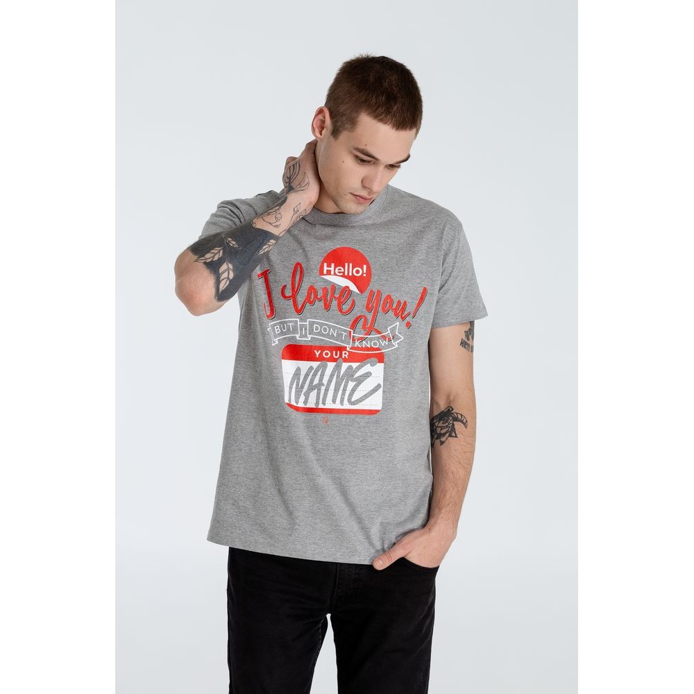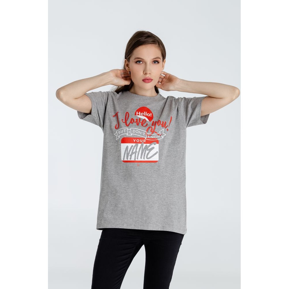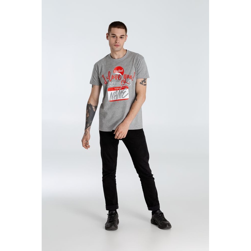 Футболка Hello! I Love You!, серый меланж