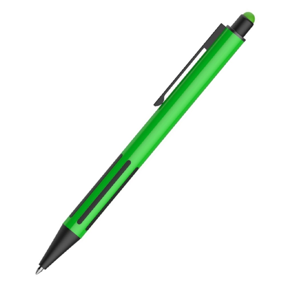 IMPRESS TOUCH, ручка шариковая со стилусом, зеленый/черный, алюминий, пластик, прорезиненный грип