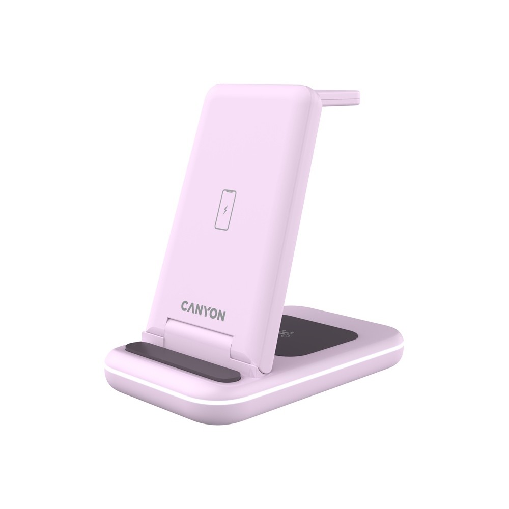 Беспроводное зарядное устройство 3-в-1 CANYON WS-304 (CNS-WCS304B), 15W, розовый