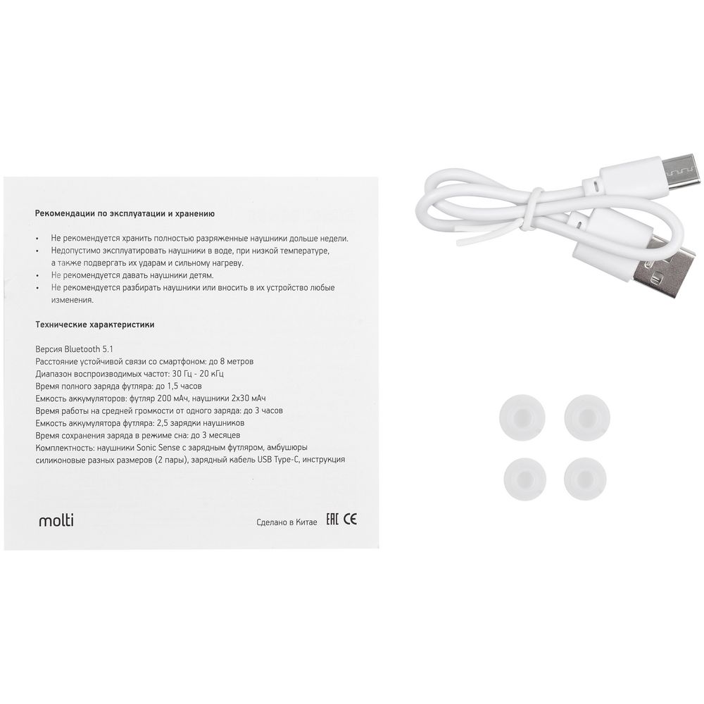 Технические характеристики Беспроводные наушники Sonic Sense, белые