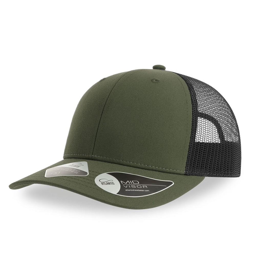 Бейсболка BRYCE, 6 клиньев, сетка, 100 % переработанный полиэстер, застежка, оливковый, черный
