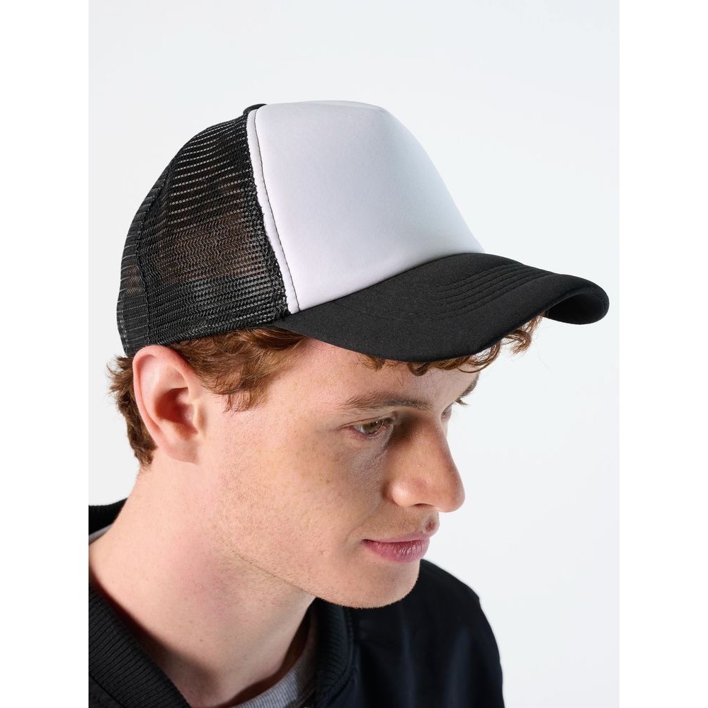 Бейсболка с 5 клиньями из сетки. Поролон в переднем клине (5 мм) и козырьке (3 мм). Регулируемая пластиковая застежка.