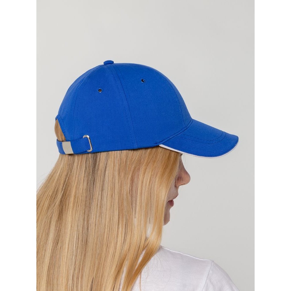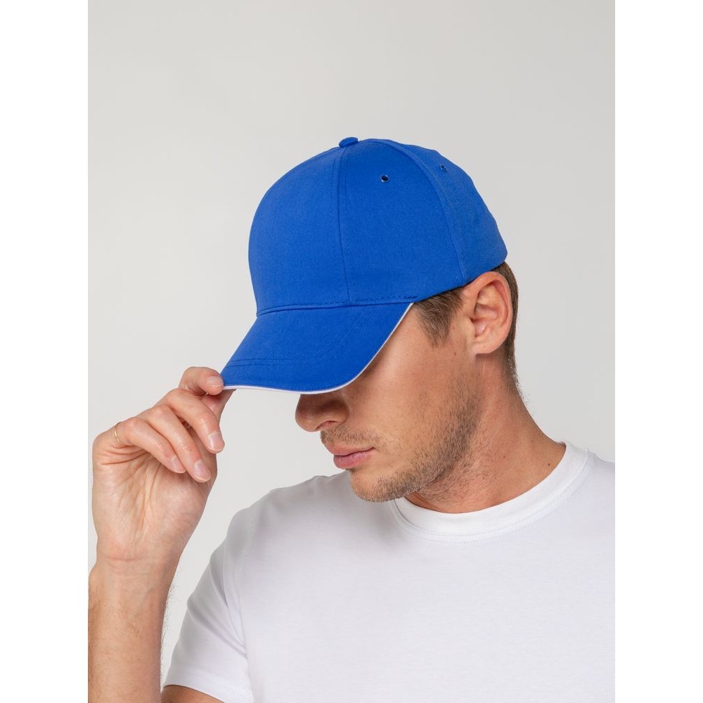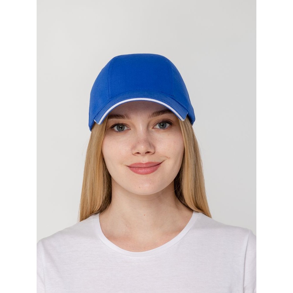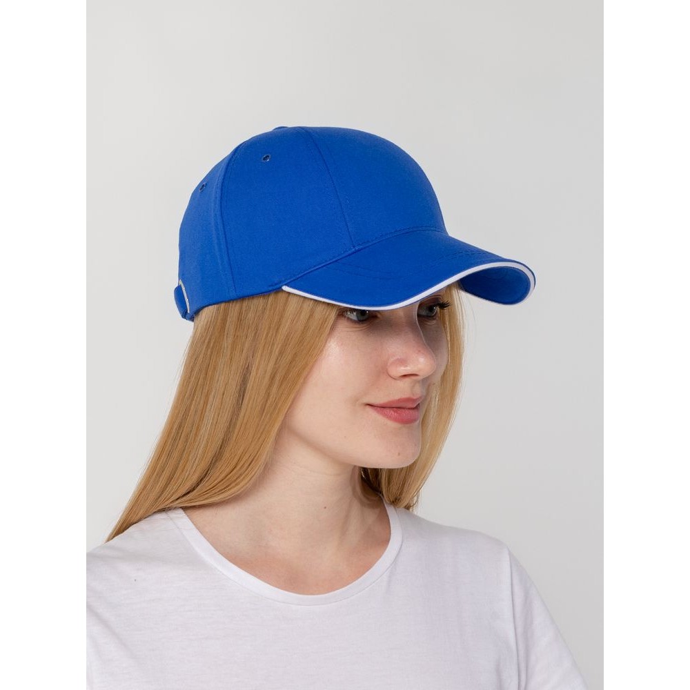 Бейсболка Canopy, ярко-синяя с белым кантом