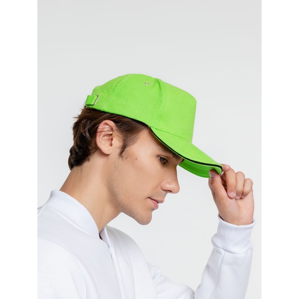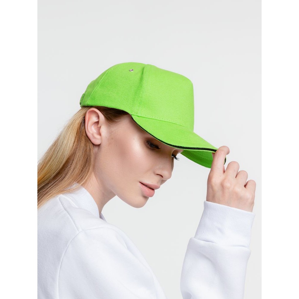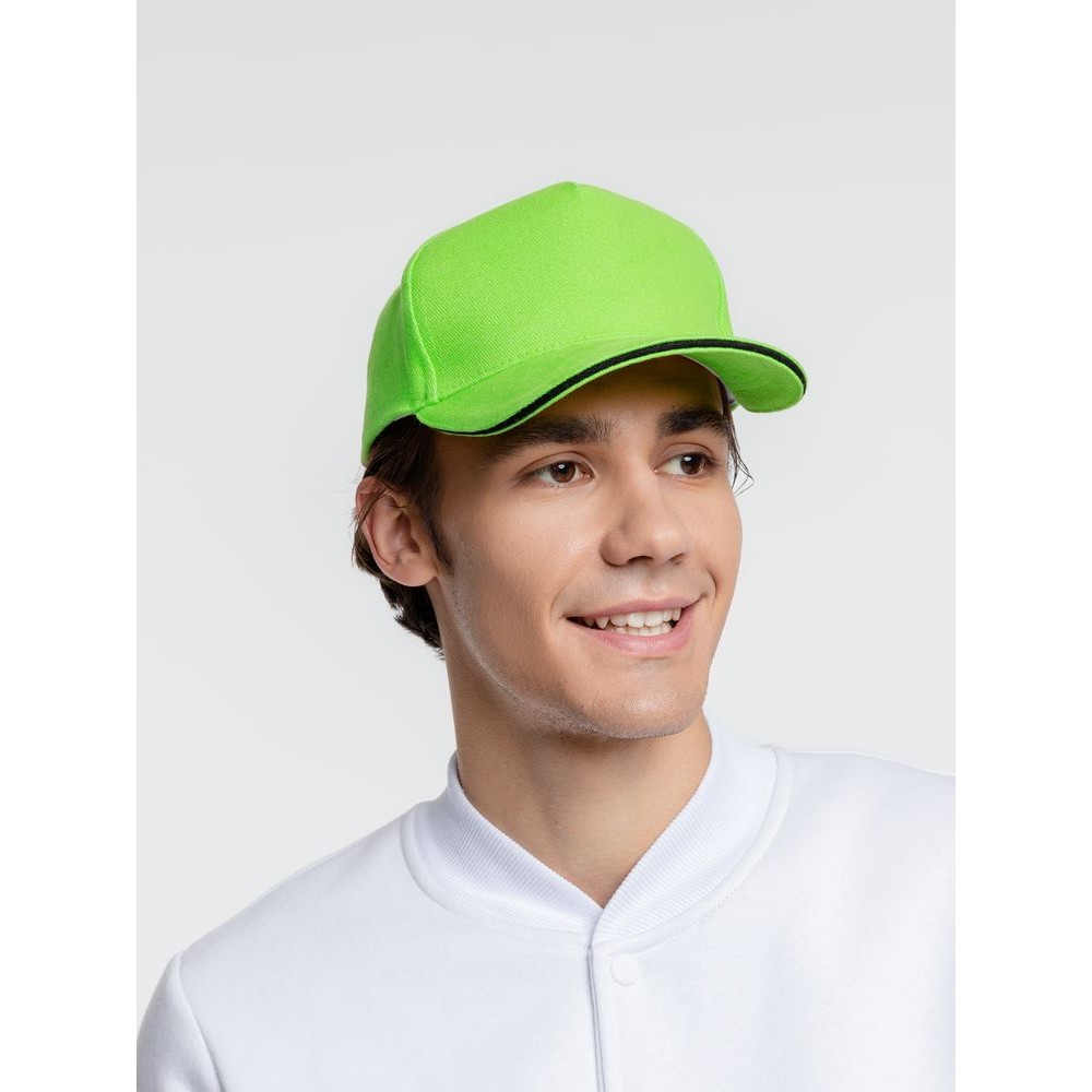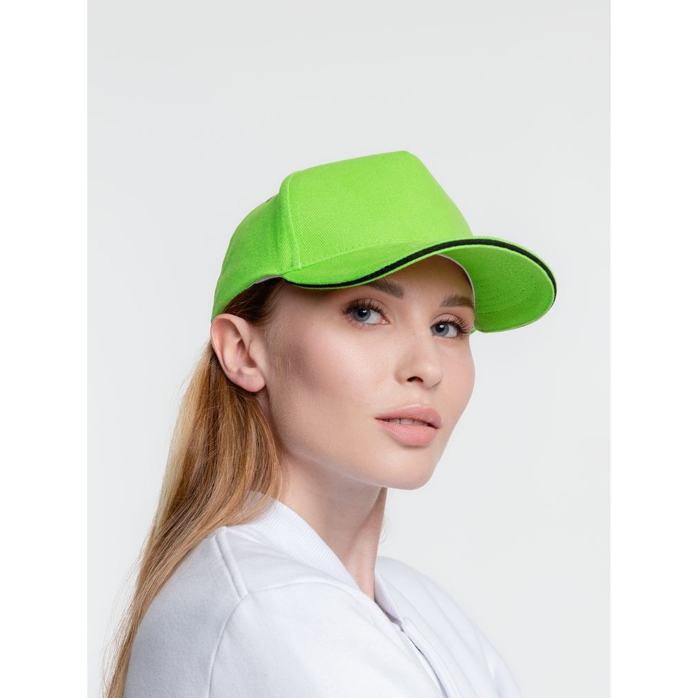 Технические характеристики Бейсболка Classic, зеленое яблоко с черным кантом