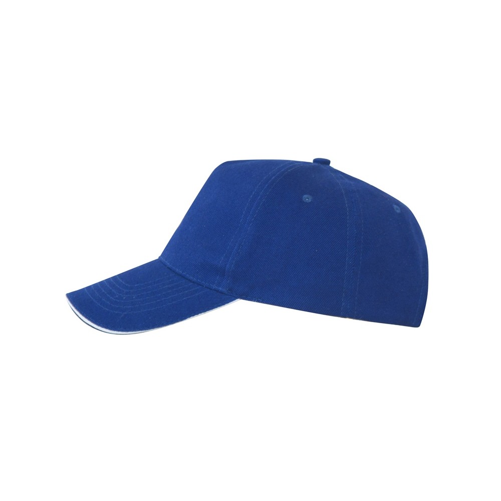 Бейсболка из 5 панелей с контрастным сэндвичем. Четыре вышитых вентиляционных люверса. Застежка на липучку.