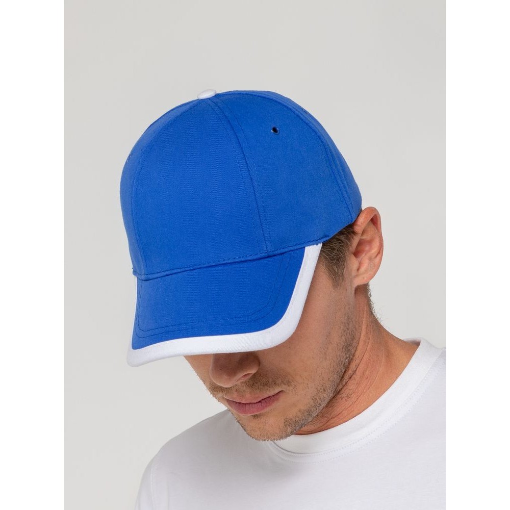 Бейсболка Honor, ярко-синяя с белым кантом