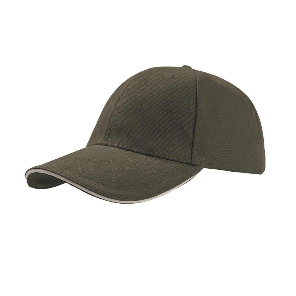 Технические характеристики Бейсболка "LIBERTY SANDWICH",6 клиньев,сэндвич,металлич.застежка,оливк. с бежевым,100%хлоп,250 г/м2