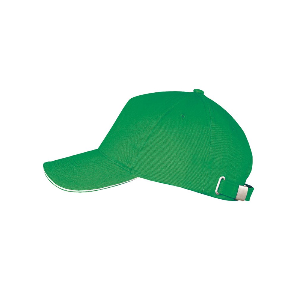 Бейсболка "LONG BEACH", 5 клиньев, метал. застежка, я.зеленый/белый, 100% хлопок, плотность 260 г/м2