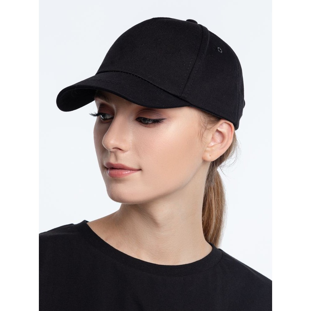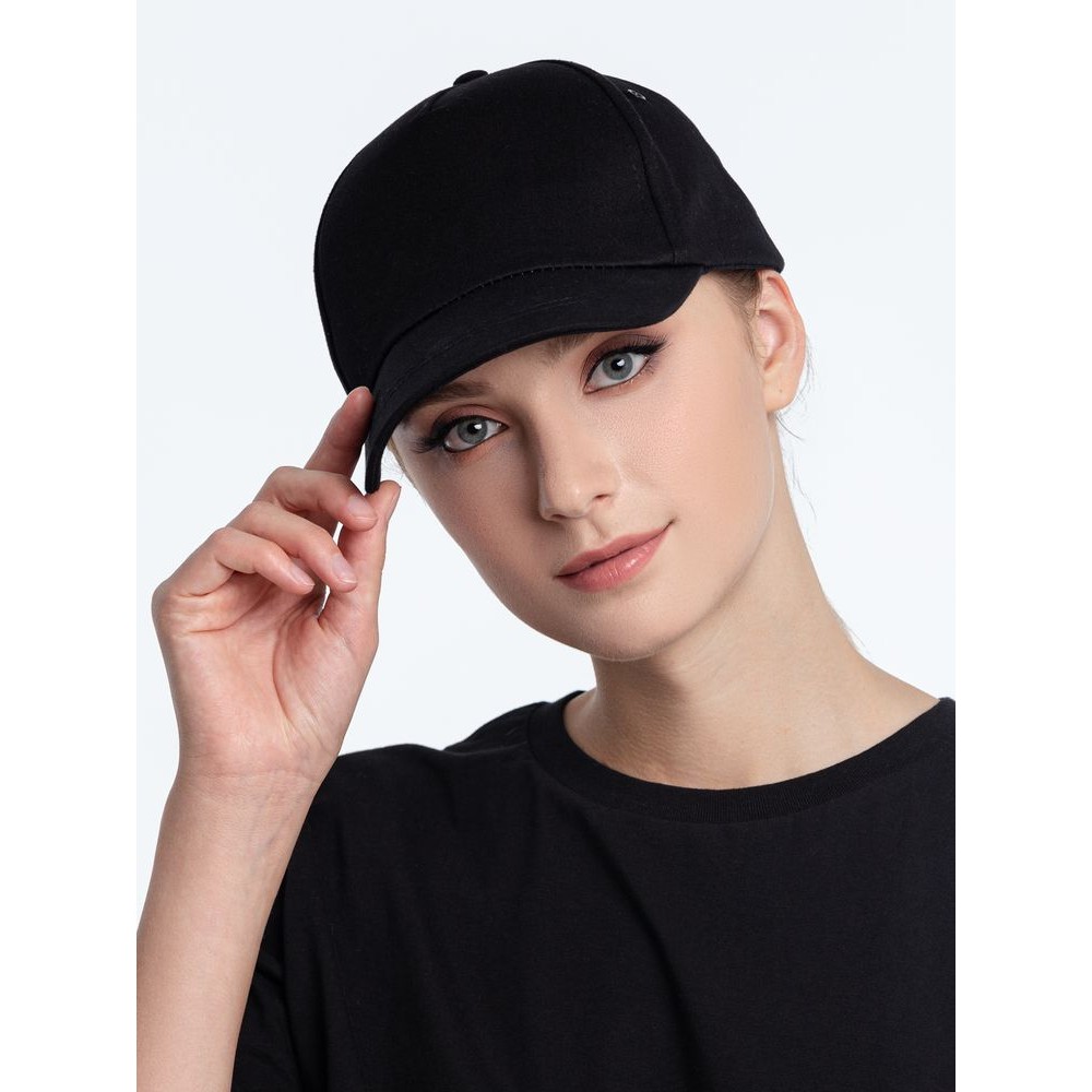 Модель бейсболки с 5-ю клиньями без лобового шва из плотного чесаного хлопка.