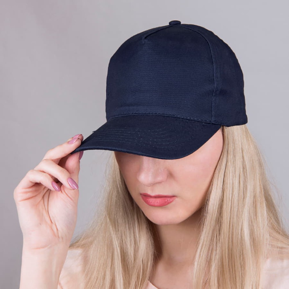 Жёсткий козырек, 4вышитыхлюверса, 5 клиньев без лобового шва, металлическая застёжка.