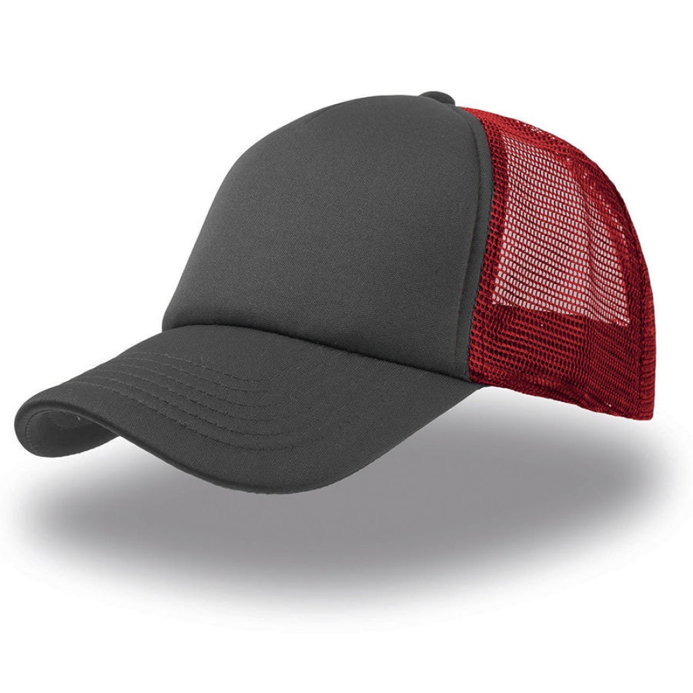 Технические характеристики Бейсболка "RAPPER", 5 клиньев, пластиковая застежка, красный серый;100% полиэстер, плотность 80 г/м2