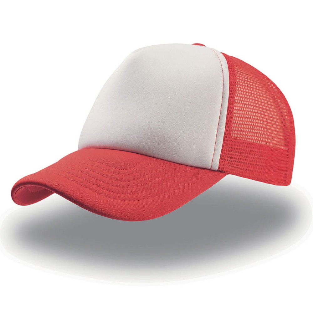 Бейсболка "RAPPER", 5 клиньев, пластиковая застежка,красный с белым,100% полиэстер,плотность 80 г/м2