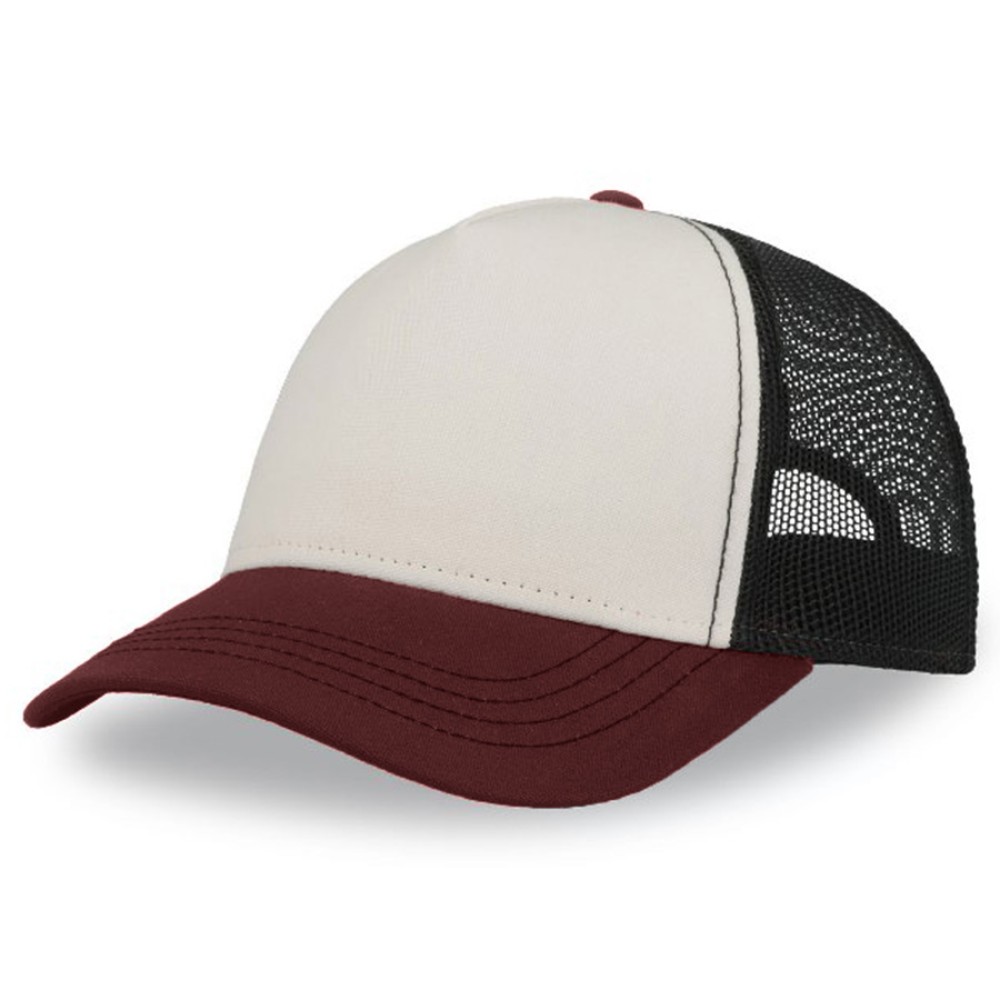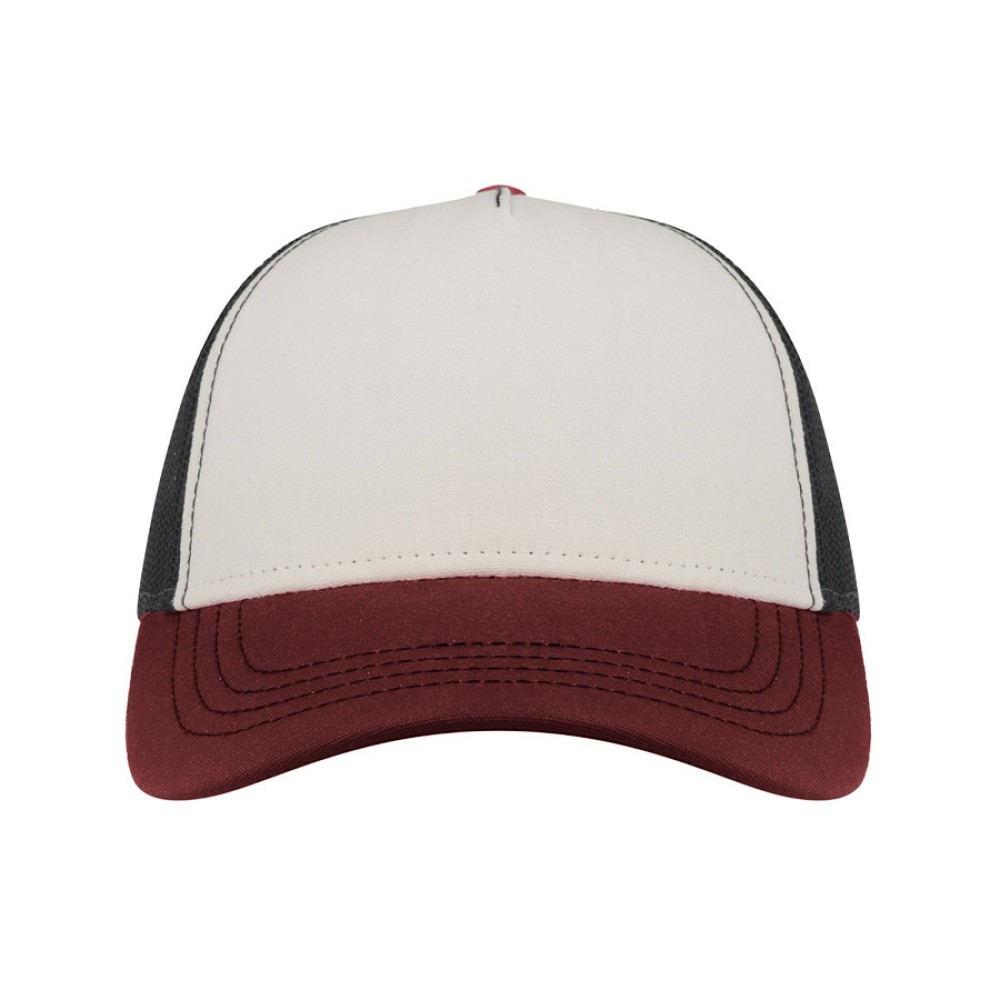 Лобная часть купола: цвет близкий к Pantone WhiteС, козырёк: цвет близкий к Pantone 188 C, сетка: цвет близкий к Pantone Black C
