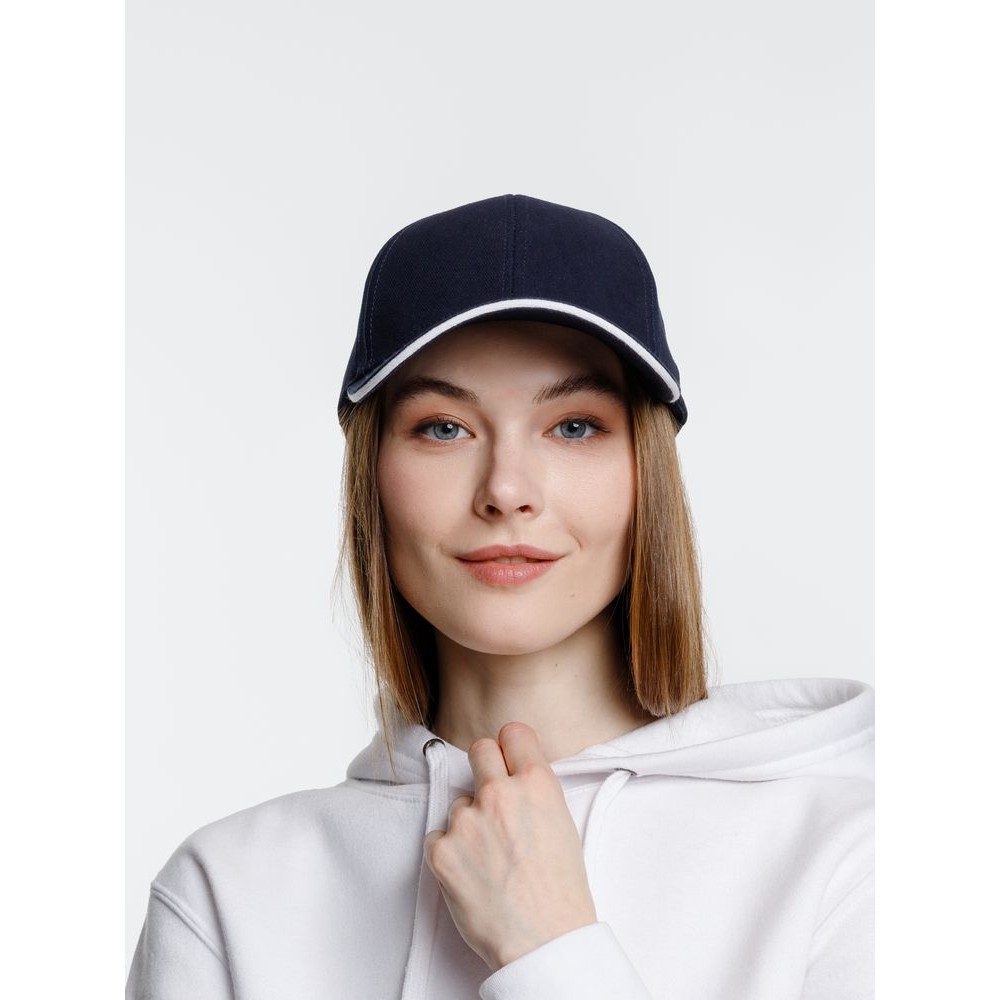 - Плотный козырек-сэндвич с контрастной вставкой