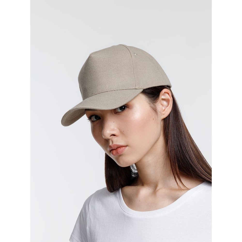 Минималистичная бейсболка с закругленным козырьком и большим местом для нанесения логотипа.