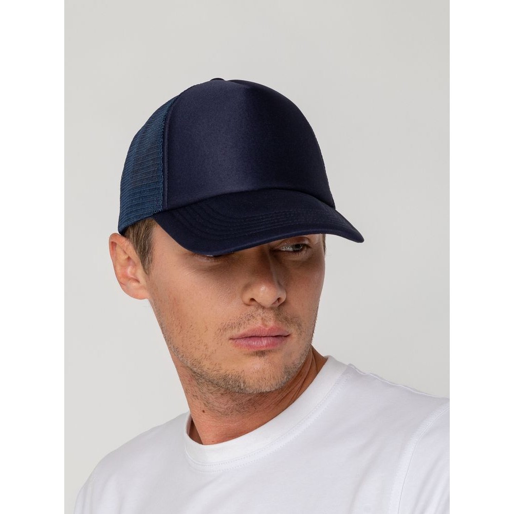 Стандартная модель с 5 клиньями без лобового шва в нестандартном исполнении. Передний клин и козырек выполнены из полиэстера с наполнителем из поролона, боковые и задние клинья — из сетки. Размер регулируется с помощью пластиковой застежки.