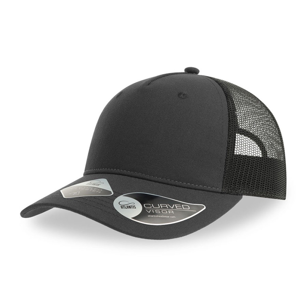 Технические характеристики Бейсболка ZION,5 клиньев,сетка,пласт.застежка, сер., черн.,100 % переработанный полиэстер,200 г/м2