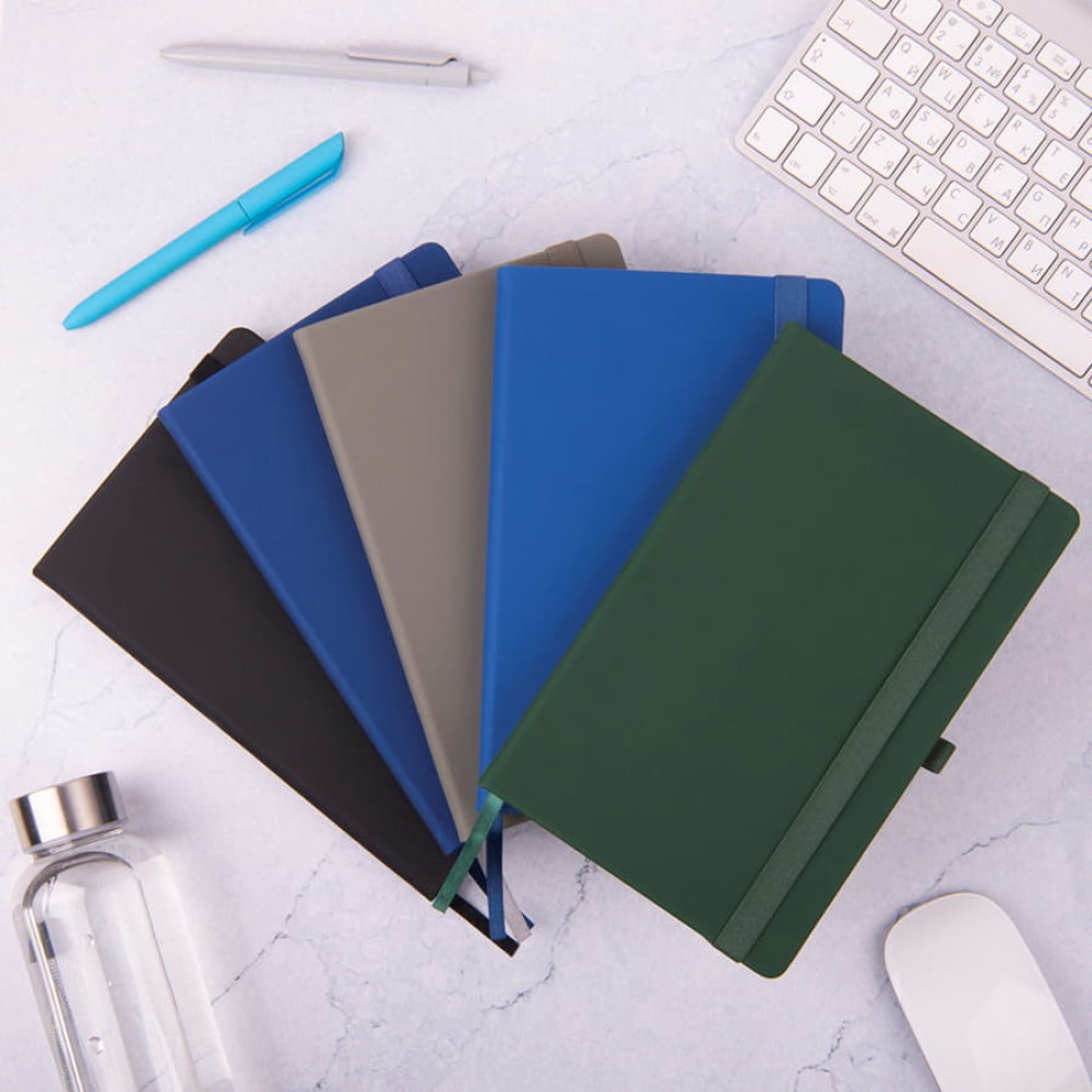 Самый популярный блокнот в твердой обложке, с эластичной резинкой, пенхолдером и ляссе в тон.