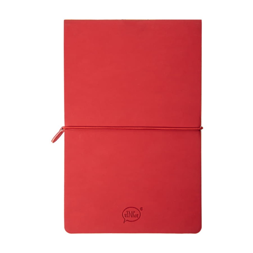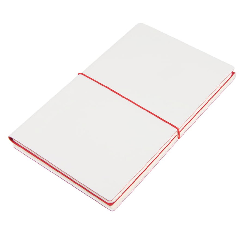 с оборотной стороны - яркий PU Silk Plus (цвет, близкий к pantone 200C). - два разных внутренних блока по 96 страниц соединены пододной обложкой: