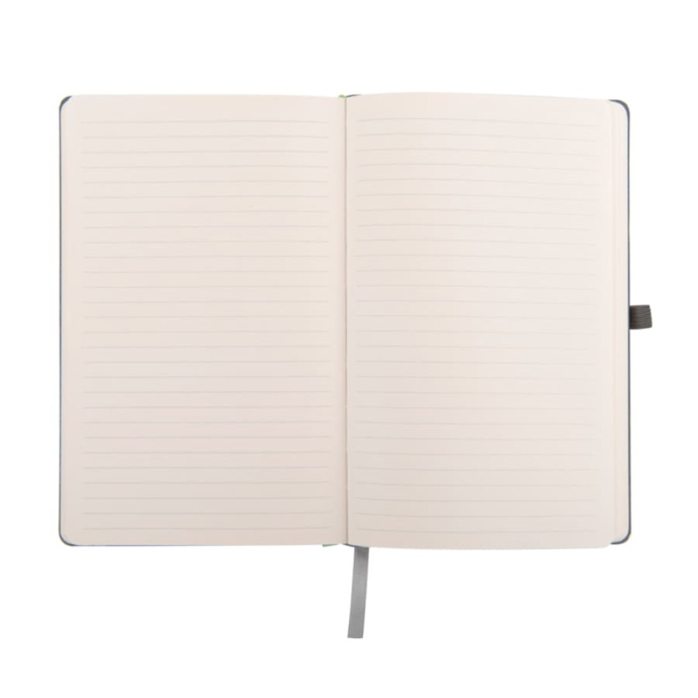 Самый популярный блокнот в твердой обложке, с эластичной резинкой, пенхолдером и ляссе в тон.
