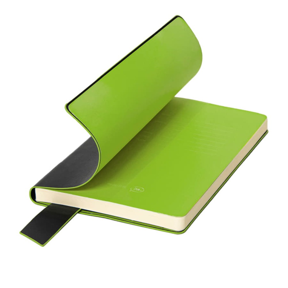 Имитирующая натуральную кожу мягкая PU обложка Bondy черного цвета по краям имеет яркую цветовую отделку.