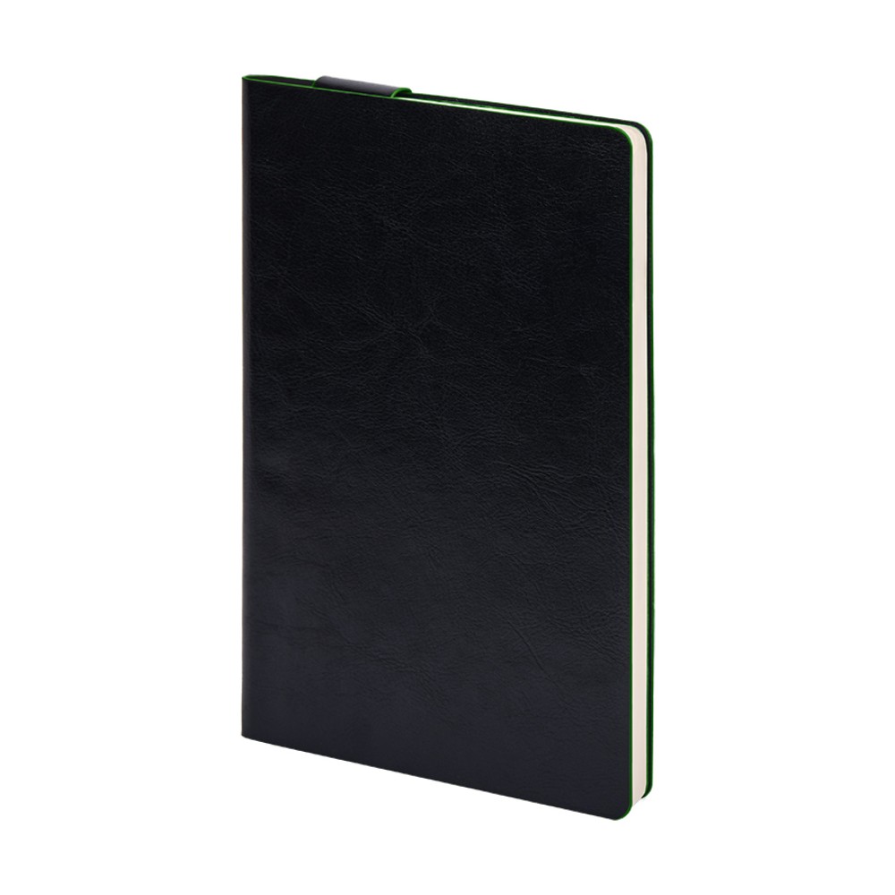 Имитирующая натуральную кожу мягкая PU обложка Bondy черного цвета по краям имеет яркую цветовую отделку.