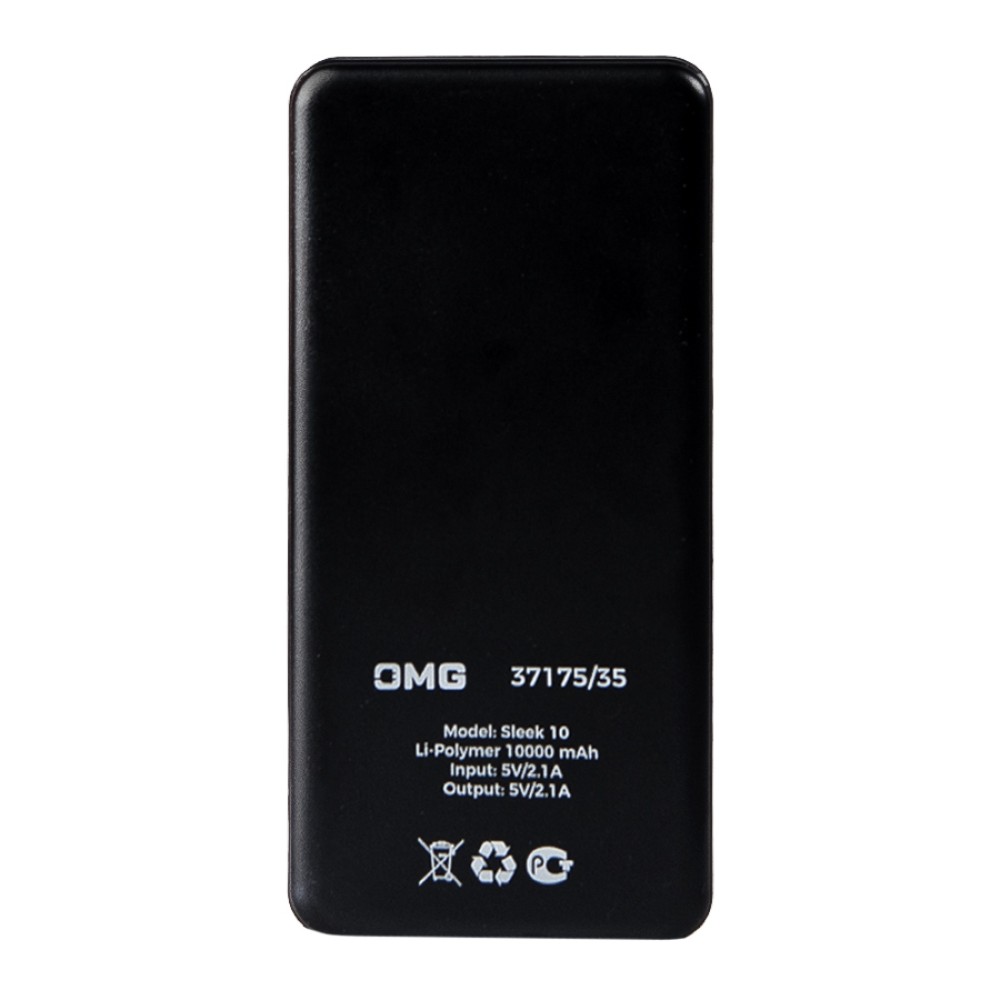 • Универсальный аккумулятор Sleek 10 (10000 мАч), черный, 14х6.8х1,5 см