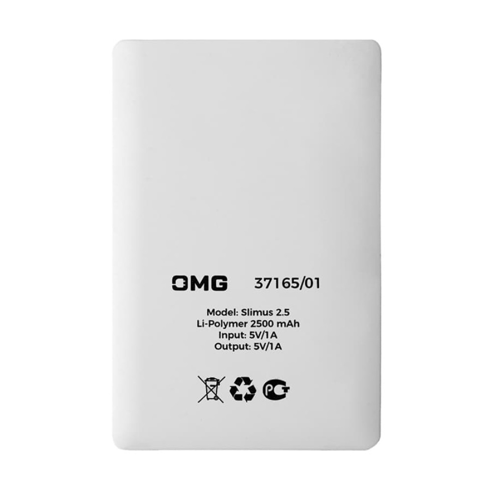 Технические характеристики Универсальный аккумулятор Slimus 2.5 (2500 мАч), белый, 9,6х6.2х0,66 см