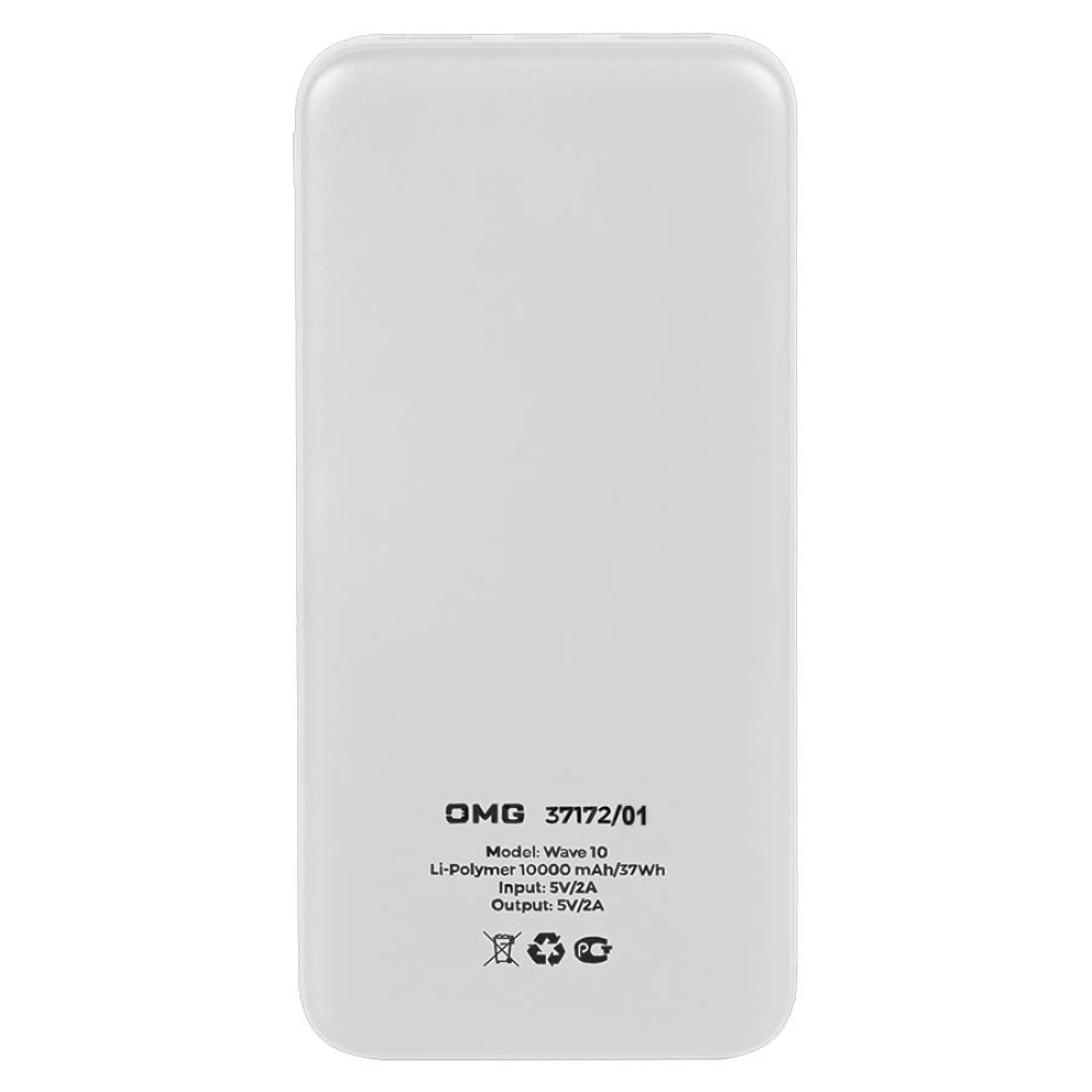 • Универсальный аккумулятор Wave 10 (10000 мАч), белый, 14,9х6.7х1,6 см
