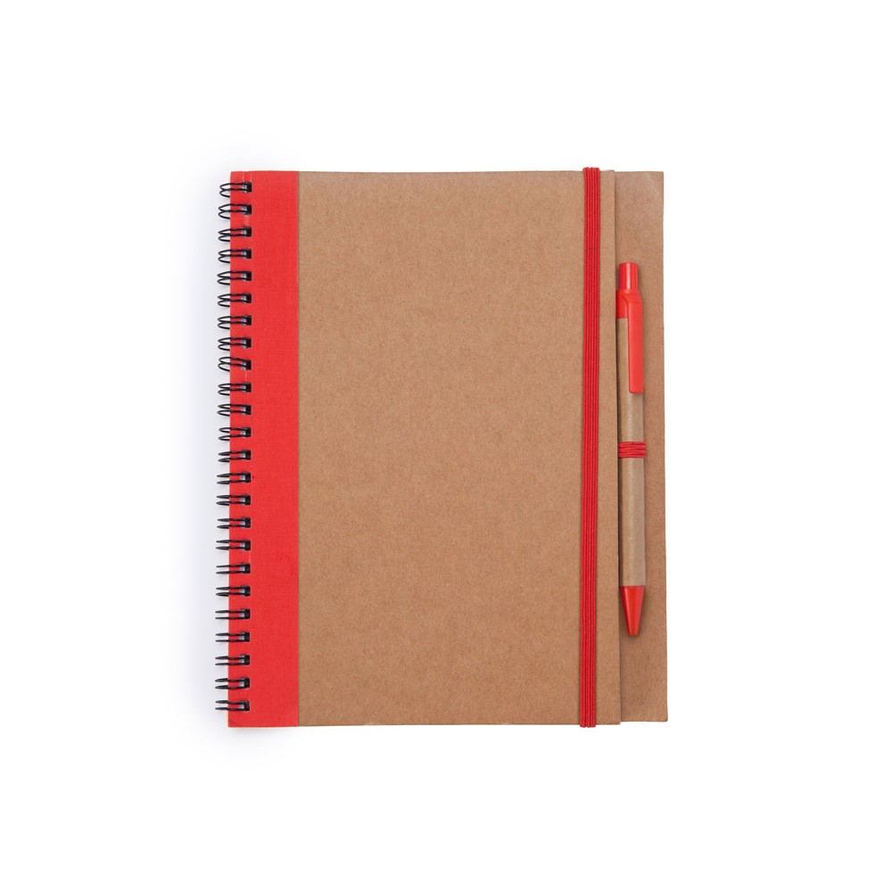 Блокнот А5+ ALANI с шариковой ручкой, крафтовый/красный