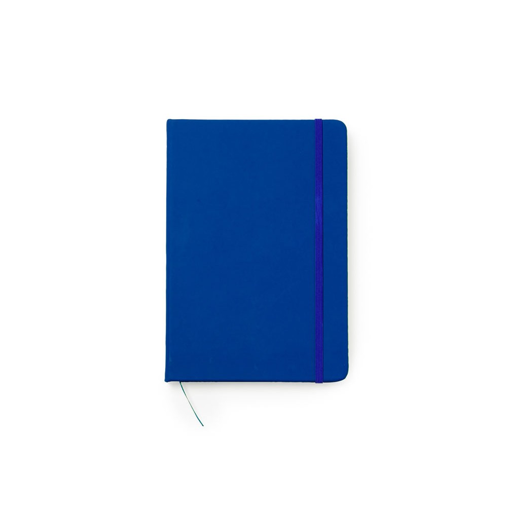 Блокнот формата А5 в обложке из искусственной кожи. Закладка и резинка. 100 листов в линейку.
