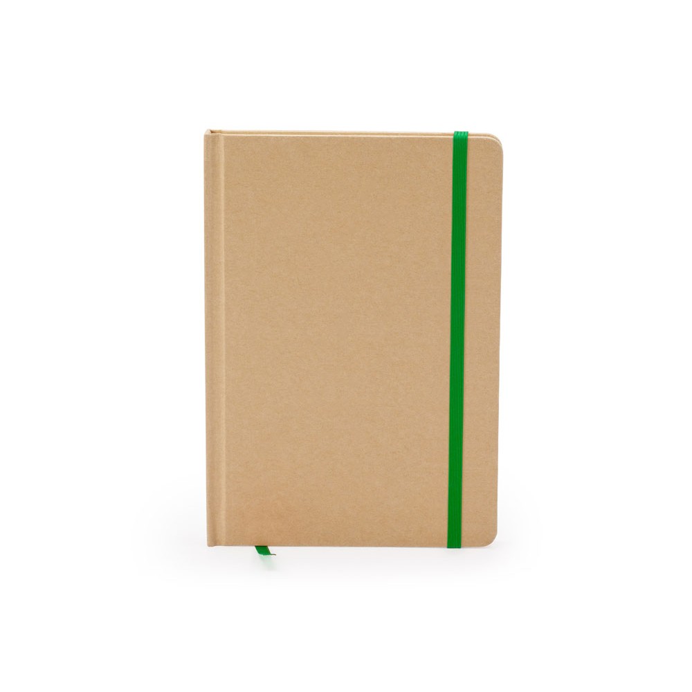 Блокнот формата А5. Твердая обложка из переработанного картона. Закладка и цветная резинка. 100 простых листов.