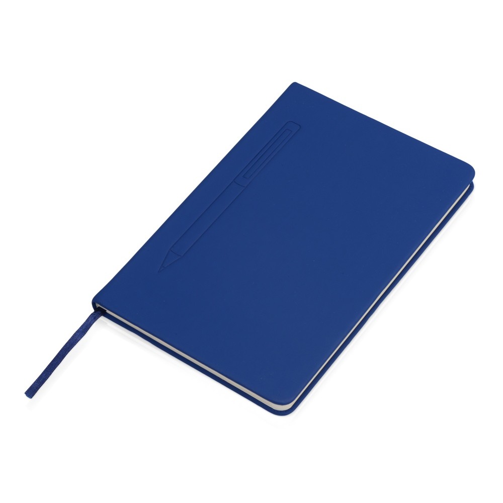 Блокнот формата А5 в твердой обложке со скруглёнными углами и блоком в линейку на 80 листов. Благодаря скрытой магнитной ленте на блокноте можно легко и надежно закрепить металлическую ручку. Зона с магнитом обозначена тиснением в форме ручки.