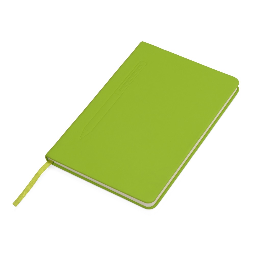 Блокнот формата А5 в твердой обложке со скруглёнными углами и блоком в линейку на 80 листов. Благодаря скрытой магнитной ленте на блокноте можно легко и надежно закрепить металлическую ручку. Зона с магнитом обозначена тиснением в форме ручки.