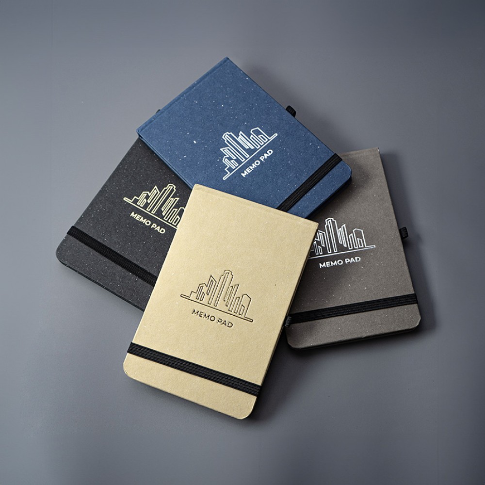 Блокнот MEMO с отрывными листами, размер 90*140 мм, обложка - переработанный картон, 64 листа из FSC кремовой бумаги, 70 г/м2, резинка-пенхолдер и резинка для фиксации. Ручка в комплект не входит.