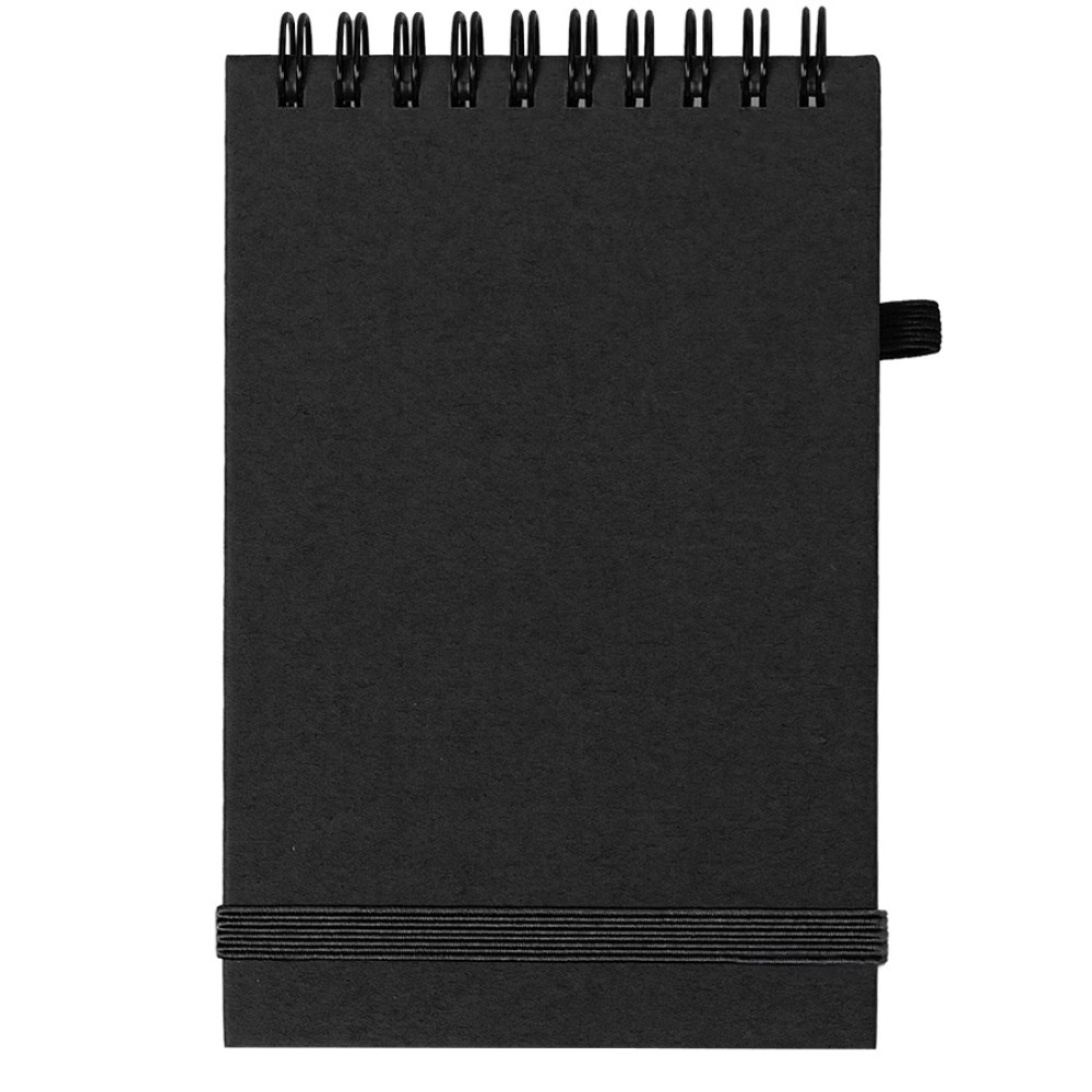 Блокнот на спиралиMEMO, размер 95*145 мм, обложка твердая, переработанное натуральное волокно, 60 листов из переработанной бумаги, 80 г/м2. Резинка-пенхолдер и резинка для фиксации.Ручка в комплект не входит