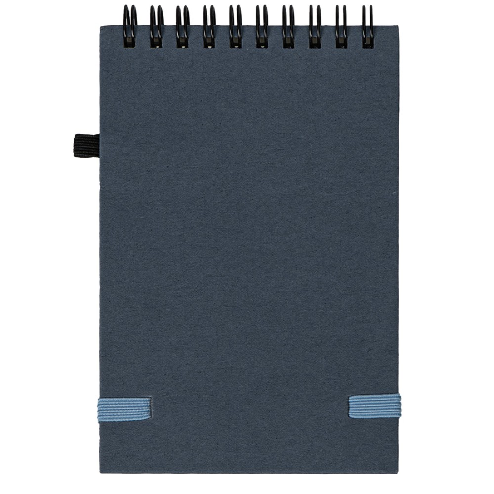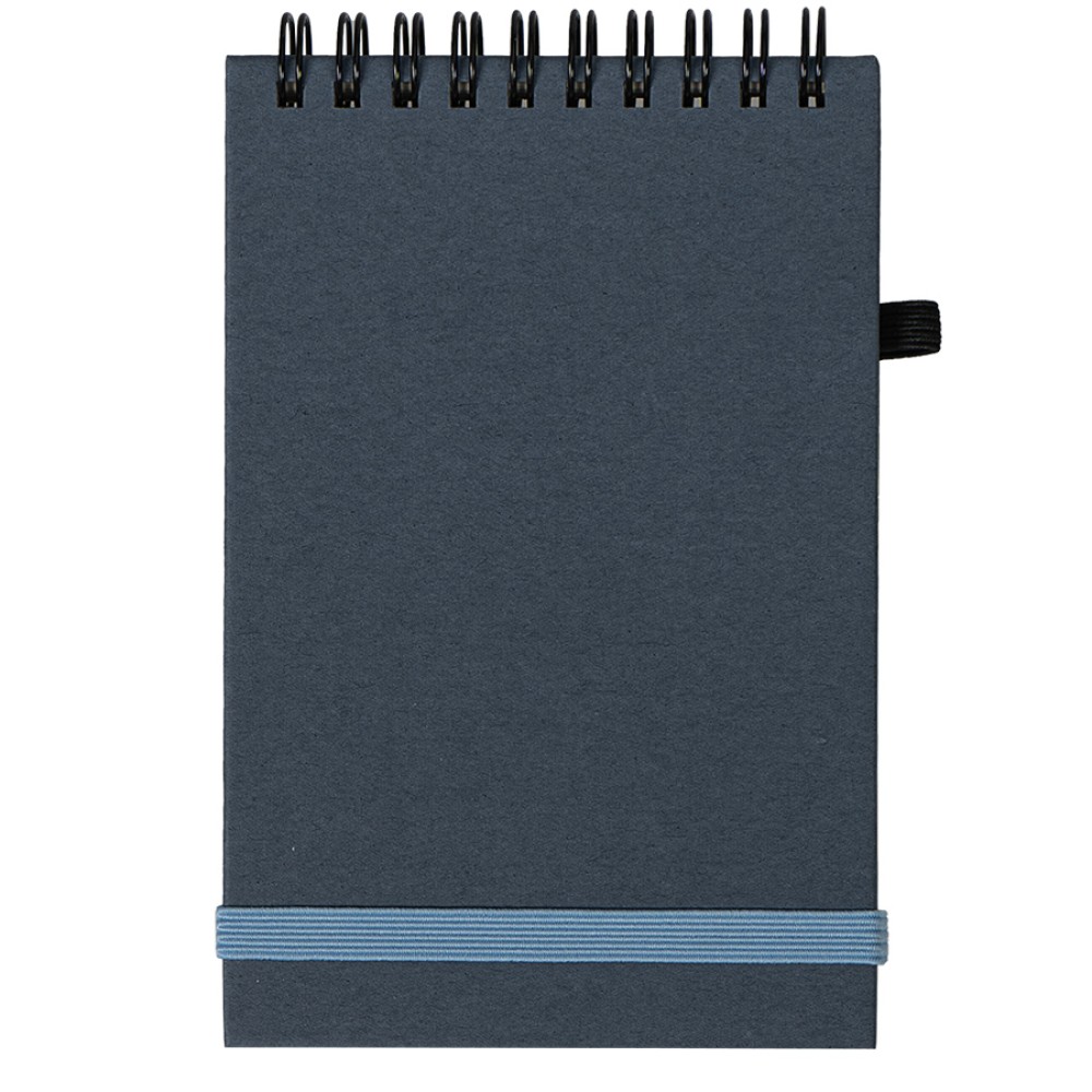 Блокнот на спиралиMEMO, 95*145 мм, обложка твердая, переработанное натуральное волокно, 60 листов из переработанной бумаги, 80 г/м2. Резинка-пенхолдер и резинка для фиксации.Ручка в комплект не входит