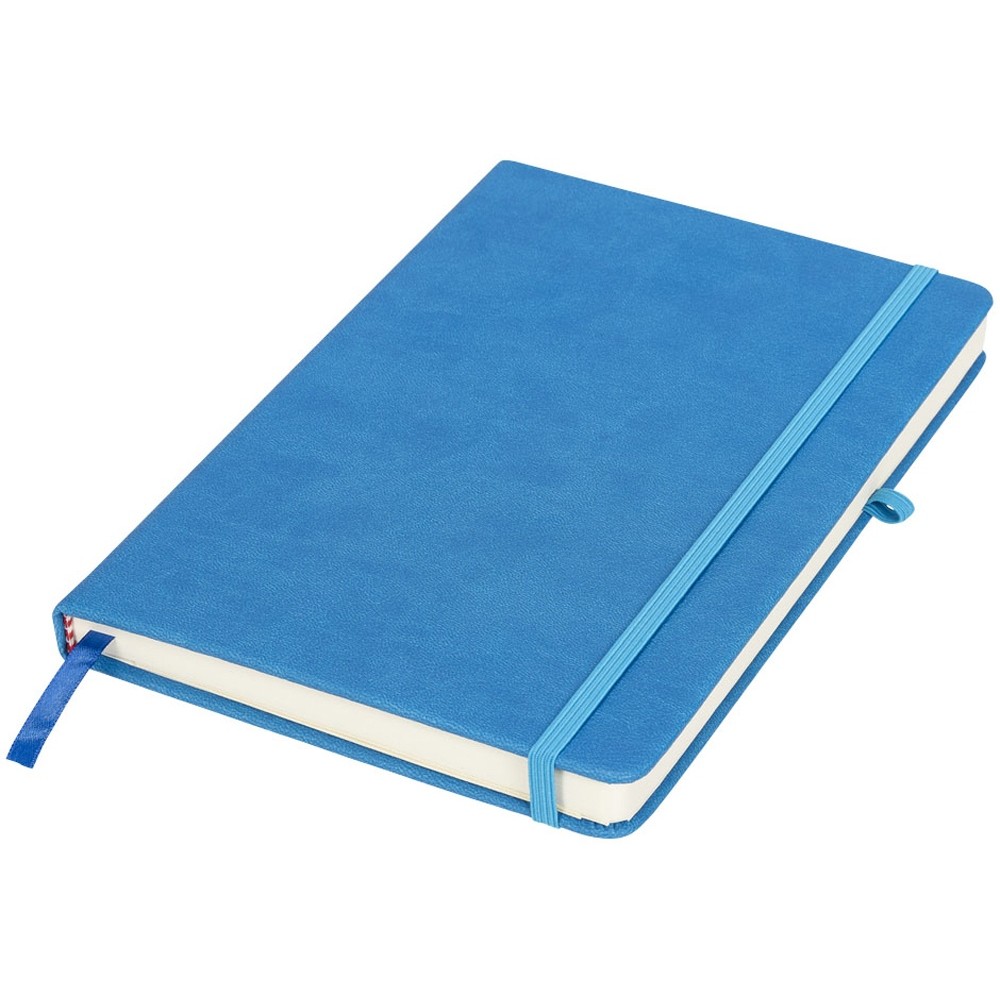 Блокнот Rivista среднего размера. Блокнот Rivista отличается стильным современным дизайном с высококачественной обложкой, идеально подходящей для нанесения логотипа и информации вашей компании. Предлагаются современные цвета. Также предусмотрена эластичная застежка, держатель для ручки, лента-закладка и внутренний кармашек на задней стороне обложки. Содержит 128 листов линованной бумаги (70 г/м²) кремового цвета. ПУ.