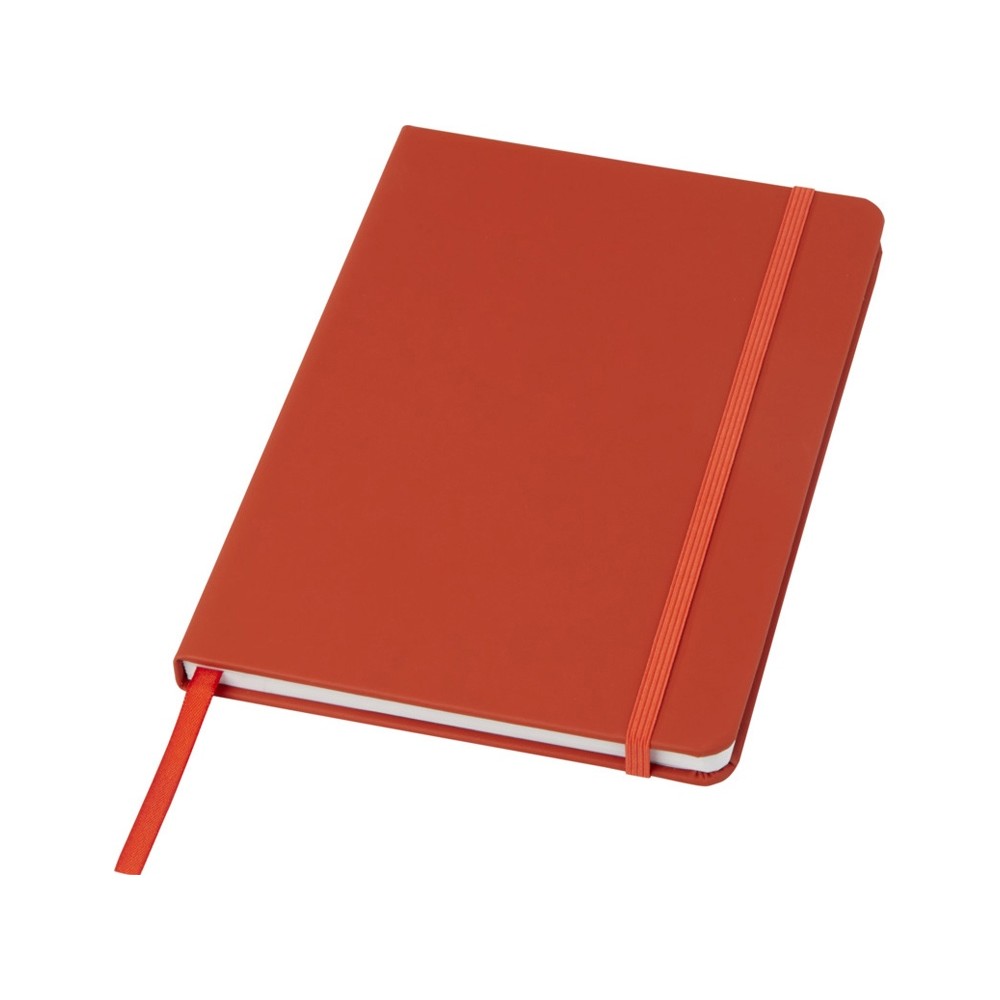 Блокнот А5 с цветной резинкой и закладкой. 96 листов белой бумаги (60 г/м2). FSC certified paper, PU Plastic. FSC Mix Credit P7.1 CU-COC-877277.
