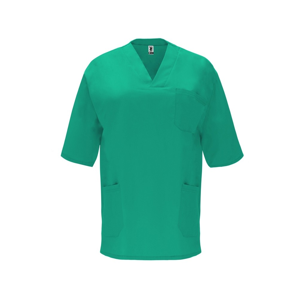 Рабочая блуза унисекс с короткими рукавами и горловиной с V-образным вырезом с небольшим запахом. Один нагрудный карман и два карманы по бокам. Боковые разрезы. Комбинируется с брюками Vademecum.