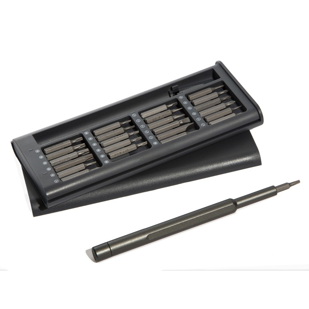 Everybit Lite — это набор отверток 24-в-1, изготовленный из прочной стали CRV и включающий в себя необходимые детали для ремонта смартфонов, планшетов, ПК и игровых консолей. В комплекте с анодированным, противоскользящим и вращающимся колпачком входят долота из закаленной стали с прорезями, крестообразные, шестигранные, Torx, пятилопастные и трехлопастные. Подходит для ремонтных работ с iPhone, iPad, MacBook Air и MacBook Pro, а также Nintendo, PlayStation и XBox. Кейс выполнен из пластика.