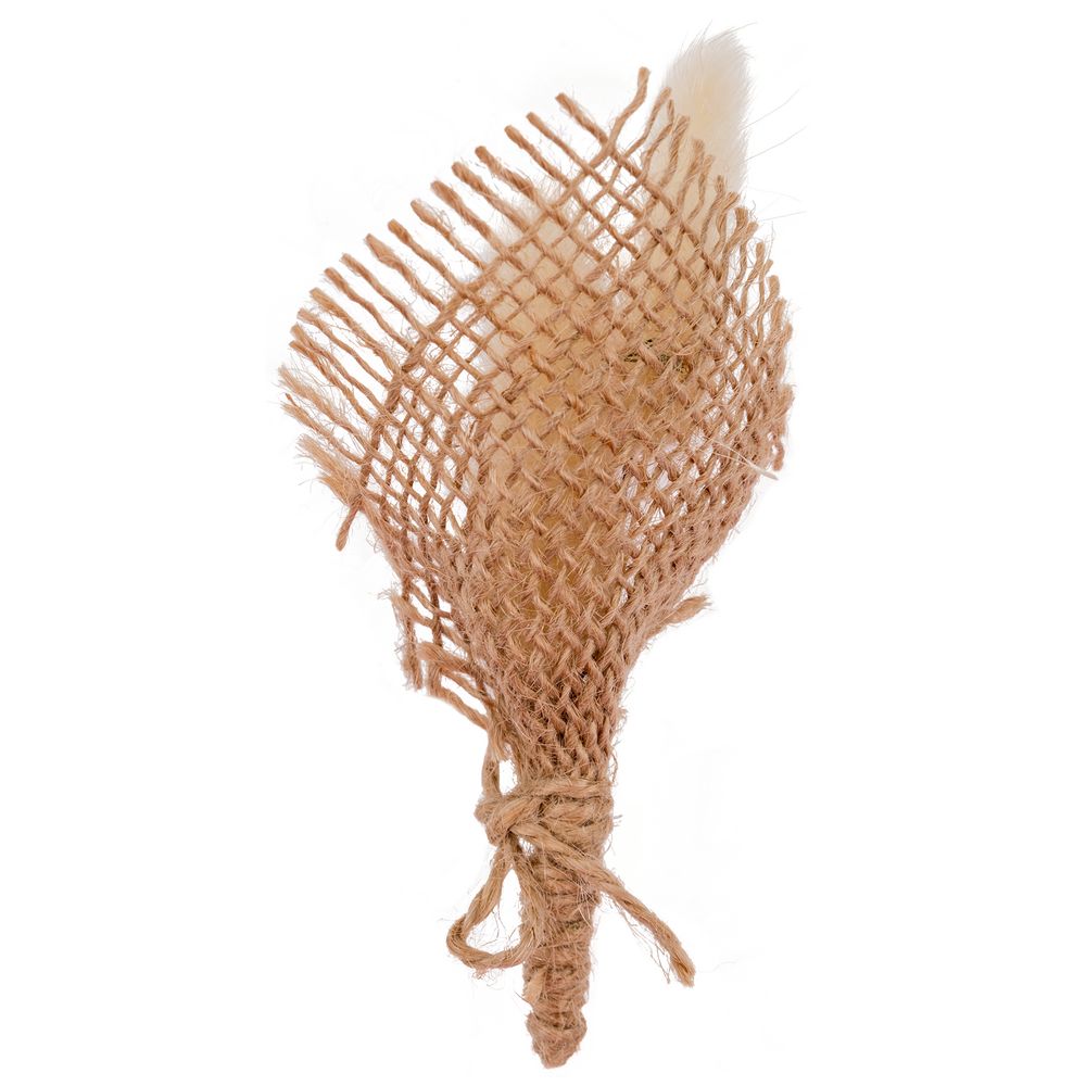 Декоративный букет из 2 веточек белого ларгуса и 3 искусственных ягодок красного цветаобернут в джутовую мешковину и перевязан джутовым шпагатом.