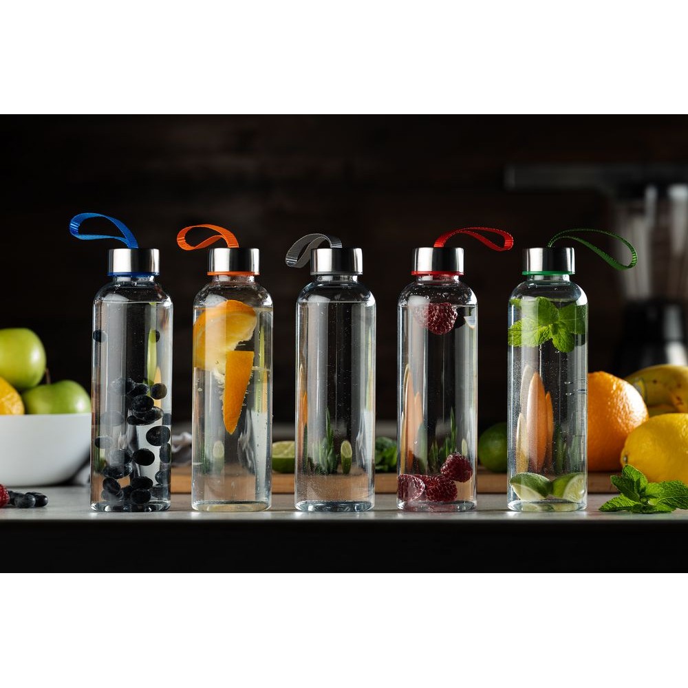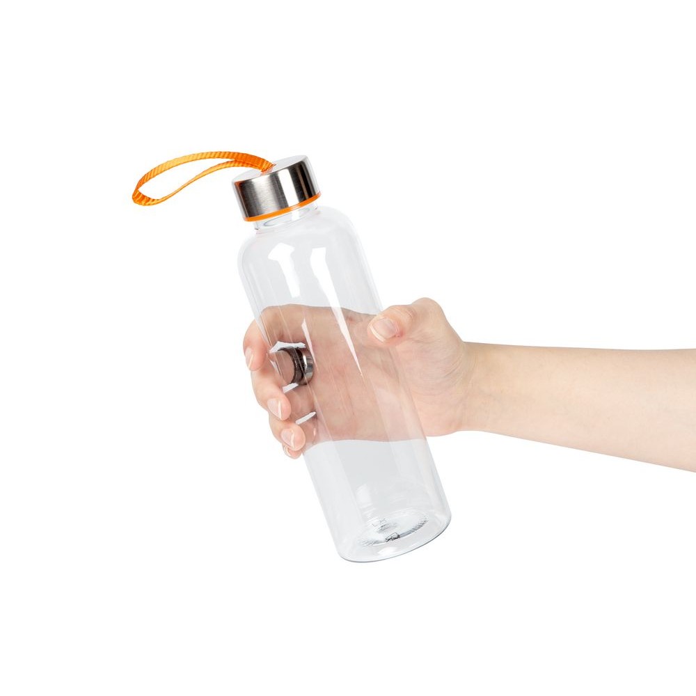 Бутылка для воды классической формы с удобной петлей для переноски и широкими возможностями по нанесению: помимо круговой УФ-печати доступны гравировка крышки или полноцветный трансфер на ремешке.